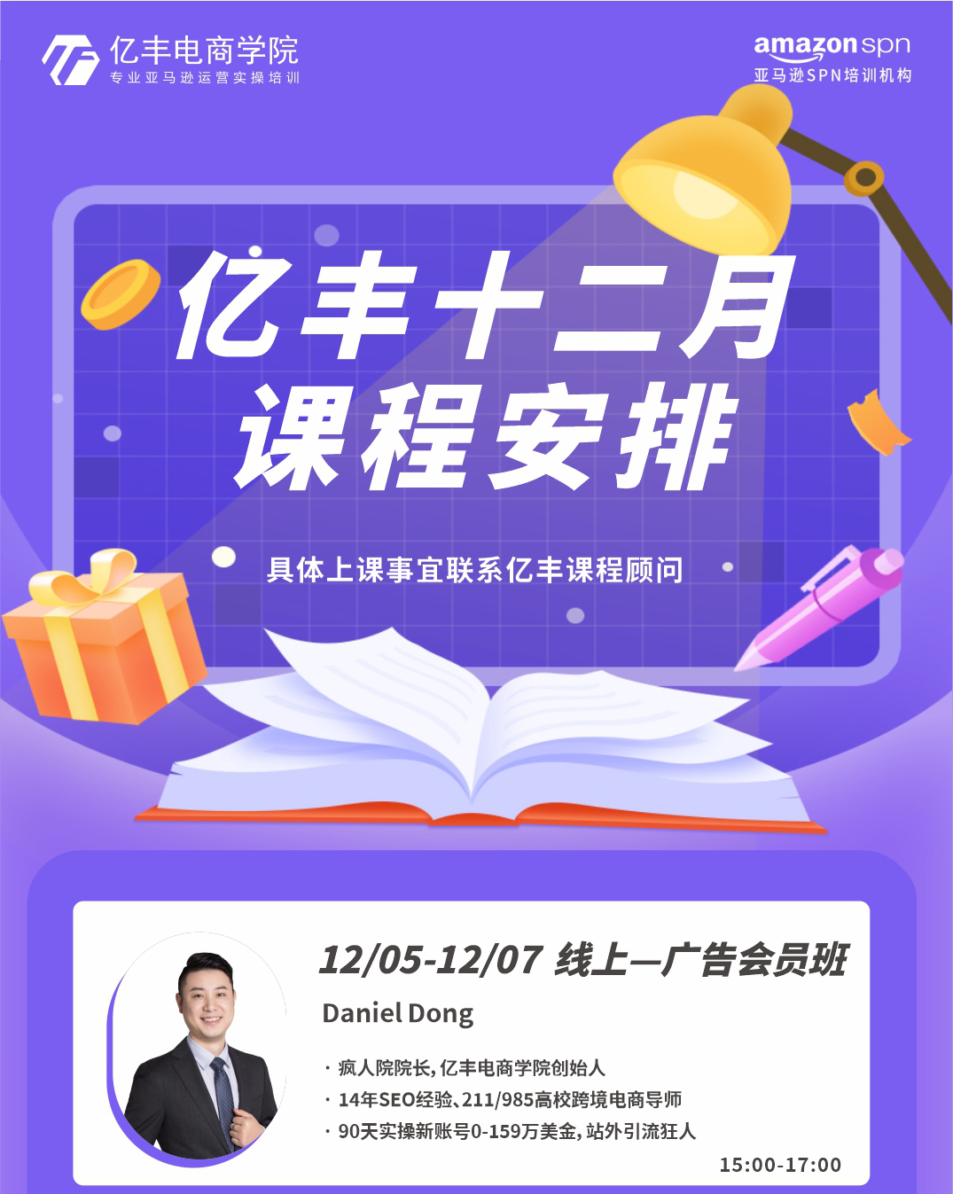亚马逊培训课程-11月份亚马逊课表-亿丰电商学院